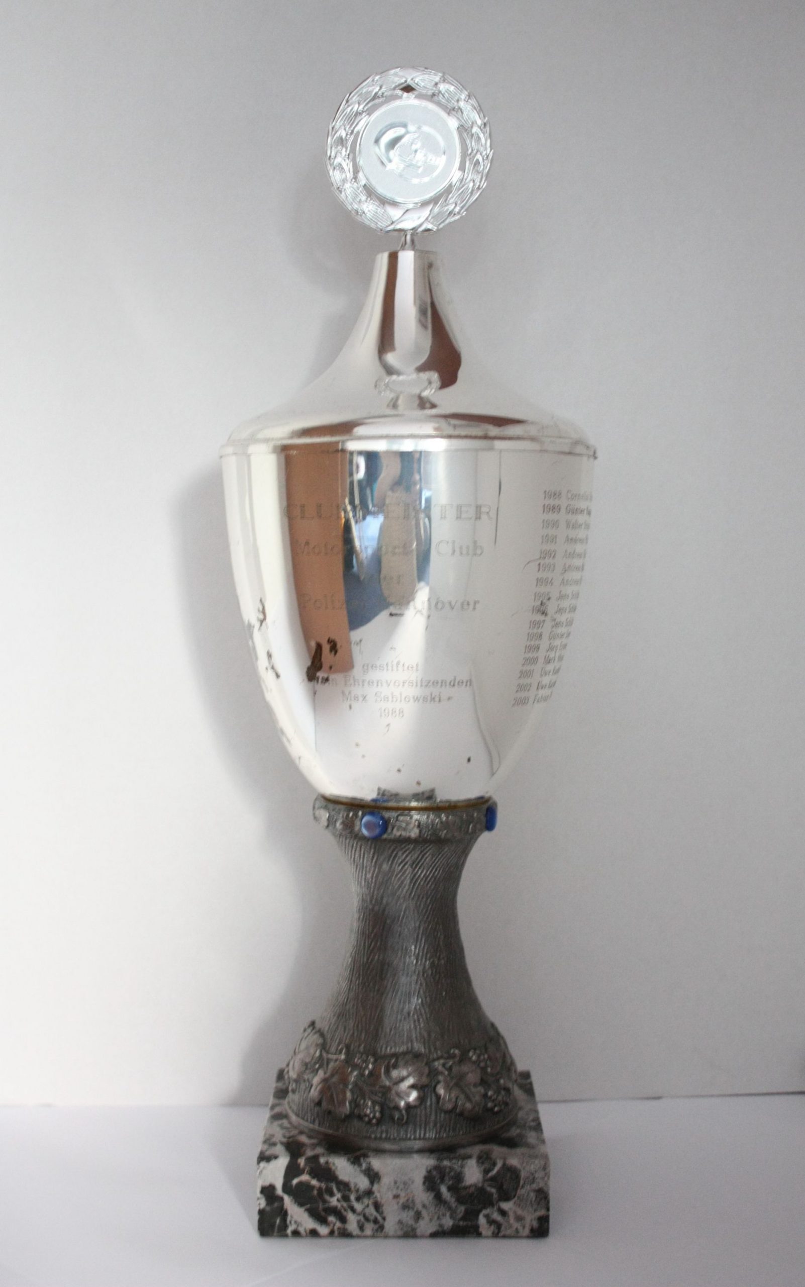 Der alljährlich zu ehrende Clubmeister wird traditionell durch den gestifteten Pokal unseres verstorbenen Ehrenvorsitzenden Max Sablowski geehrt.