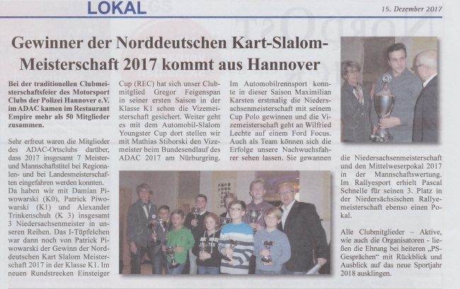 Kart-Slalom Meister Presse, TouristikVon Ellen Heise16. Dezember 2017Dieser Artikel erschien im „NORD OST BLICK“ Ausgabe 25, 15.12.2017