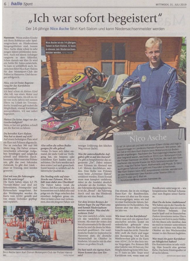… bald – nach der Sommerpause, geht es für Nico zum Endspurt. Dieser super Artikel erschien in: Hannoversches Wochenblatt am 31. Juli 2019 zum Lesen klick pdf Nico_Asche_Kart_Slalom
