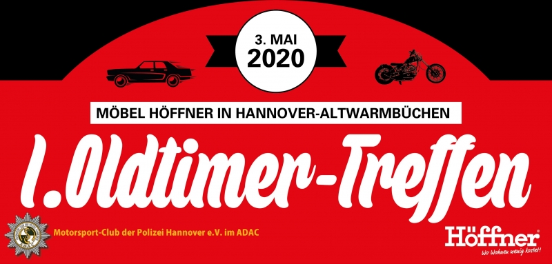1. Oldtimertreffen in Kooperation mit dem Möbelhaus Höffner in Isernhagen. Es erwarten Sie über 800 Parkplätze, davon 300 überdacht. Also auch bei schlechtem Wetter ist überdachter Parkraum für Ihren Oldtimer und die Besucher vorhanden. Zugelassen sind Fahrzeuge, die mindestens 30 Jahre alt sind.