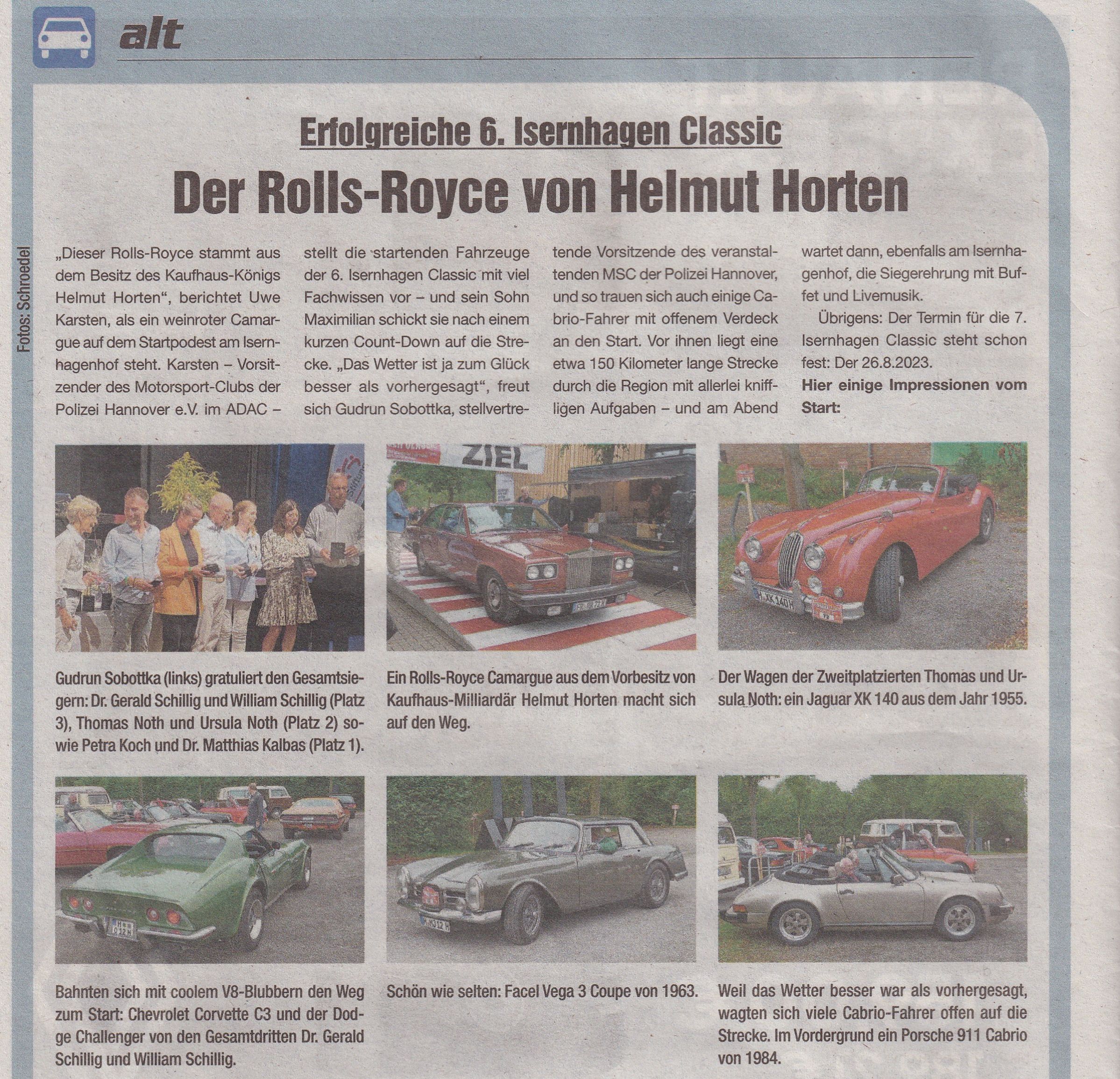 Okt.172022Isernhagen ClassicPresseDieser Artikel erschien in: „Hildesheim mobil“ Ausgabe Okt./Nov. 2022 17. Oktober 2022KommentarnavigationZurückVorheriger Beitrag:Die 6. Isernhagen Classic war ein voller Erfolg. Pünktlich gingen außergewöhnliche Oldtimer an den StartNächstesNächster Beitrag:Am 27. November fand die Sportsaison ihren feierlichen Abschluss…Ähnliche BeiträgeNachlese zur 9. Isernhagen Classic: Gesprächsstoff bis heute1. Dezember 2025Viele Schmuckstücke bei der 9. Isernhagen Classic24. Oktober 2025Chromglänzende Klassiker auf anspruchsvoller Strecke3. Oktober 2025