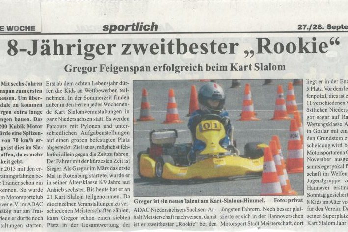Sieg beim ADAC Kartslalom für Gregor. Mit dem Sieg in seiner Altersklasse K1, holte sich der erst achtjährige Gregor Feigenspan…