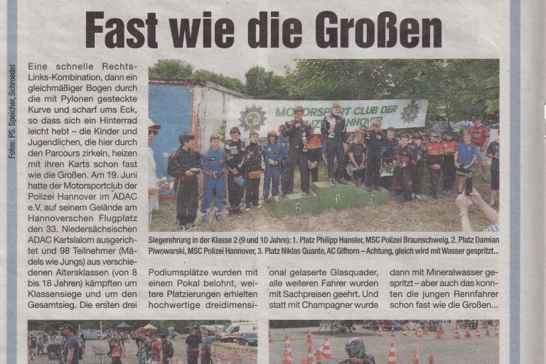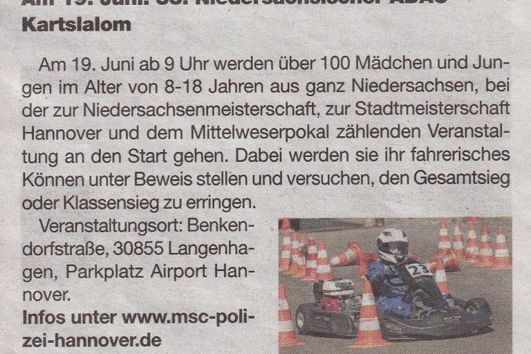 Es geht wieder los: Am Sonntag, 19. Juni fahren rund 100 Jungen und Mädchen beim 33. Niedersächsischen ADAC-Kart-Slalom um Punkte…