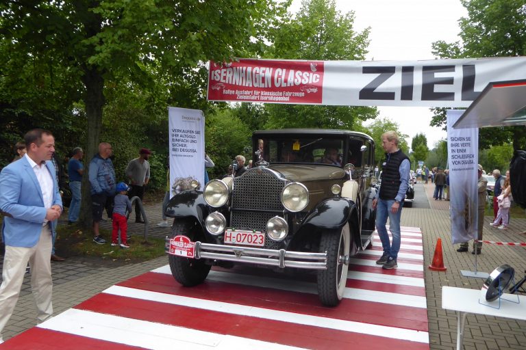 Mit Begeisterung schickte Bürgermeister Tim Mithöfer um 10:00 Uhr den Packard 726, Baujahr 1930, als ersten Teilnehmer auf die Strecke…